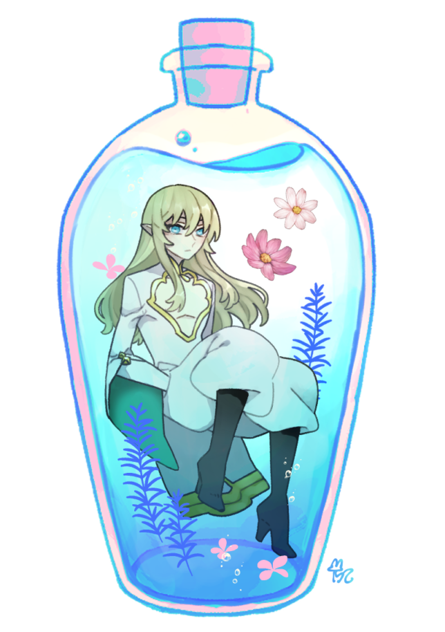 暑い日が続いていますので、涼しげな瓶にラファエロを詰めた絵にしてみました。